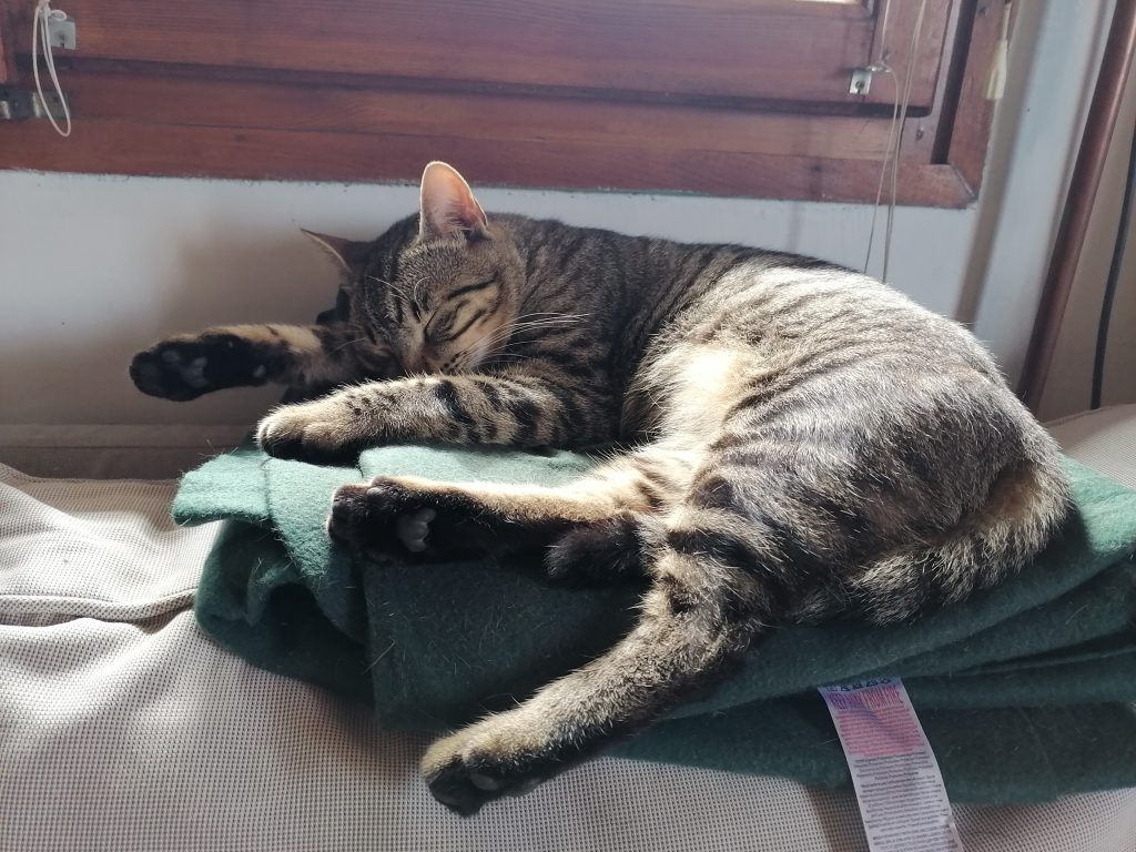 Folti a szomszédunkban lakik, két gazdája van, egy fiú és egy kislány. Amikor a család nyaralni megy, akkor én járok át hozzá. Nem is annyira a kaját várja, hanem a társaságot. Nagyon embercentrikus, kedves cica, szeretek róla gondoskodni.